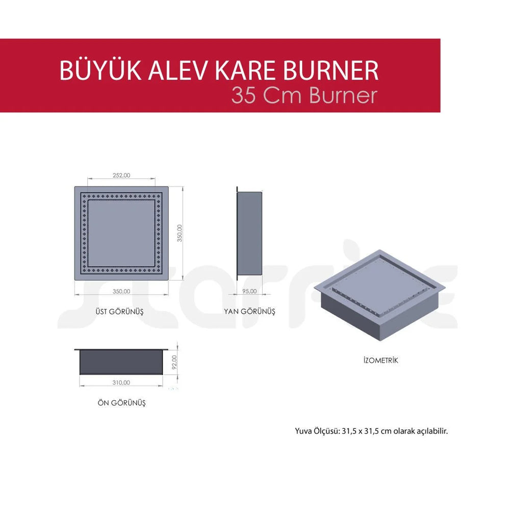 Büyük alevle yanan kare burner modelidir. Alev, etrafında bulunan deliklerden çıkmaktadır. Kuvvetli ısı vermektedir.