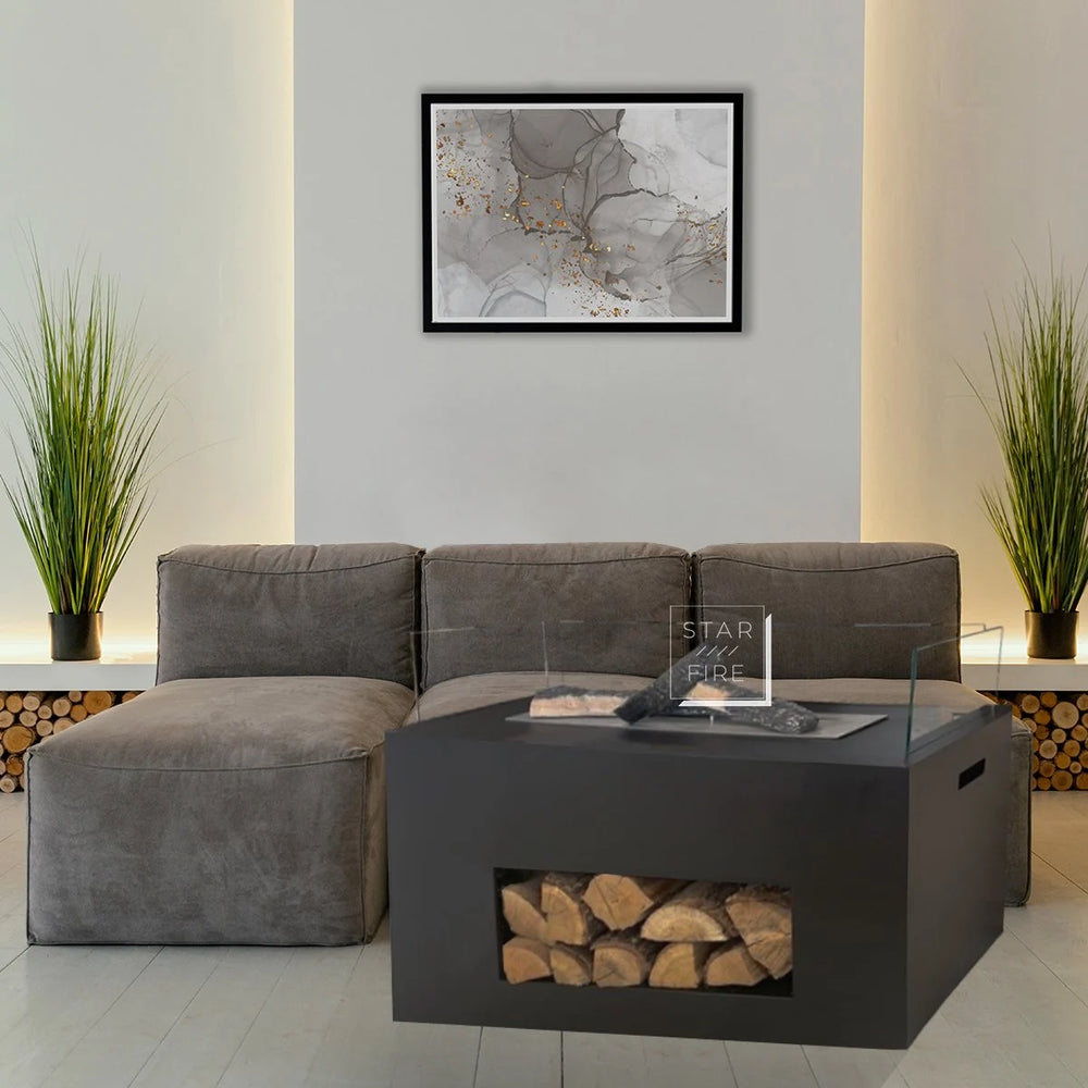 Bioethanol şömine modelidir. Alt kısmındahi odun haznesi sayesinde odunlarınızı dizerek açık alanlarınızın havasını değiştirebilirsiniz.