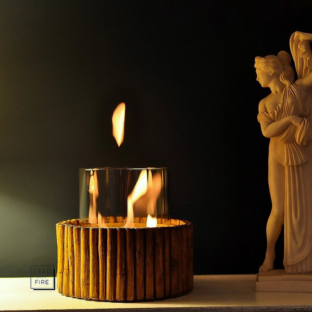 Gerçek bambudan kalıplanarak yapılan bu taş model harika bir masaüstü şöminedir. Tamamen el boyamasıdır. Hem bambunun hem de ateşin o sıcak uyumu ve karışımı bioethanol şömine keyfini hoş bir dekorasyon ile evinizin istediğini köşesine kullanılmak üzere sunmaktadır.
