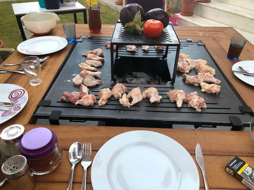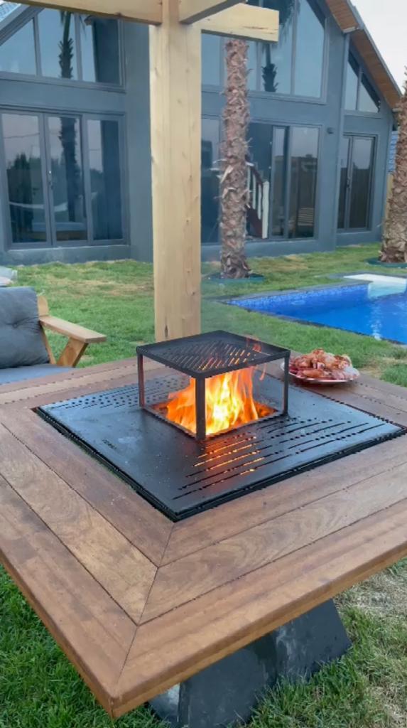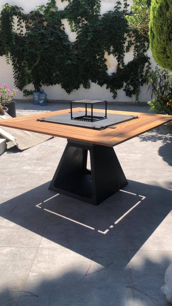 - Mangalın üst ızgara bölümü çıkmaktadır. Bu özelliği sayesinde ateş çukuru masa olarak kullanılabilme imkanı da sunmaktadır.