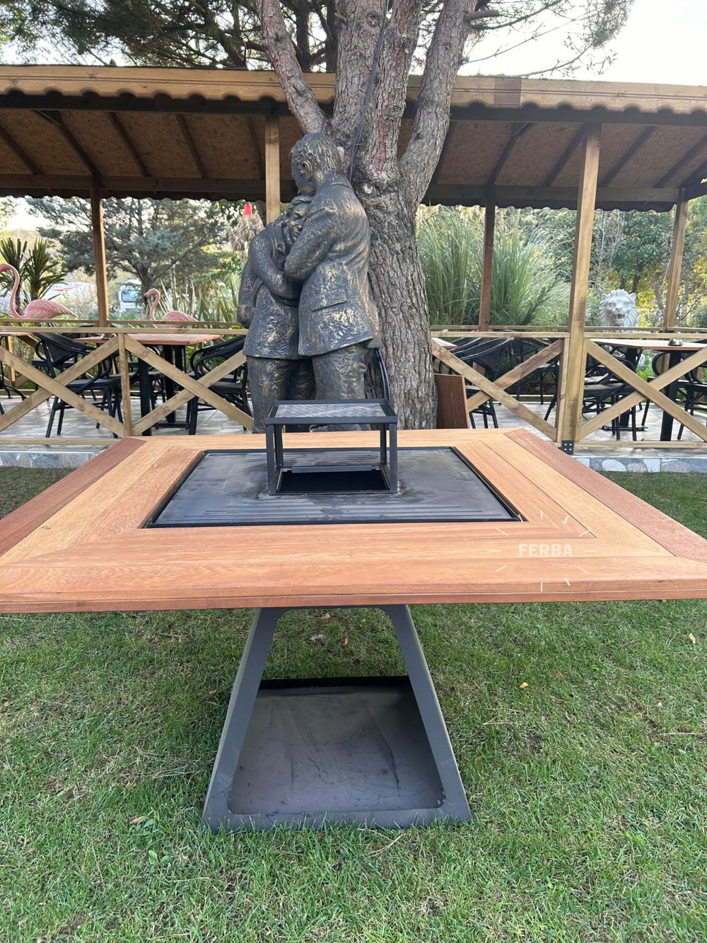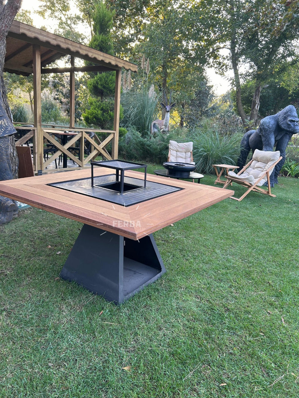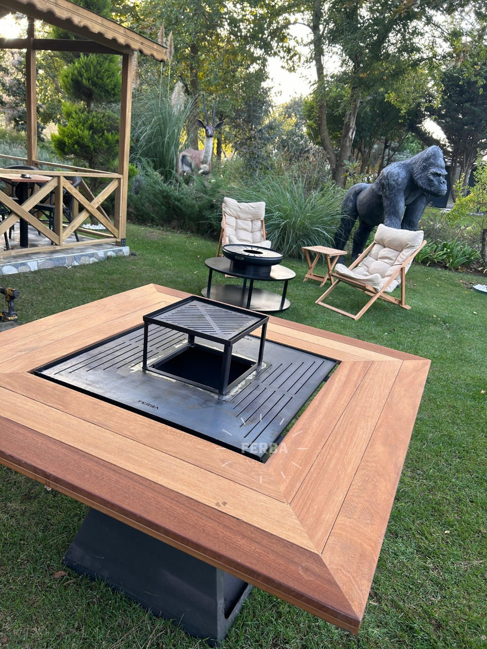 - Mangalın üstünde bulunan ahşap kısım dış ortam koşullarına dayanıklı iroko cinsi ahşaptır.