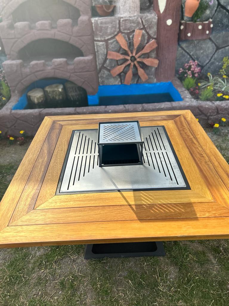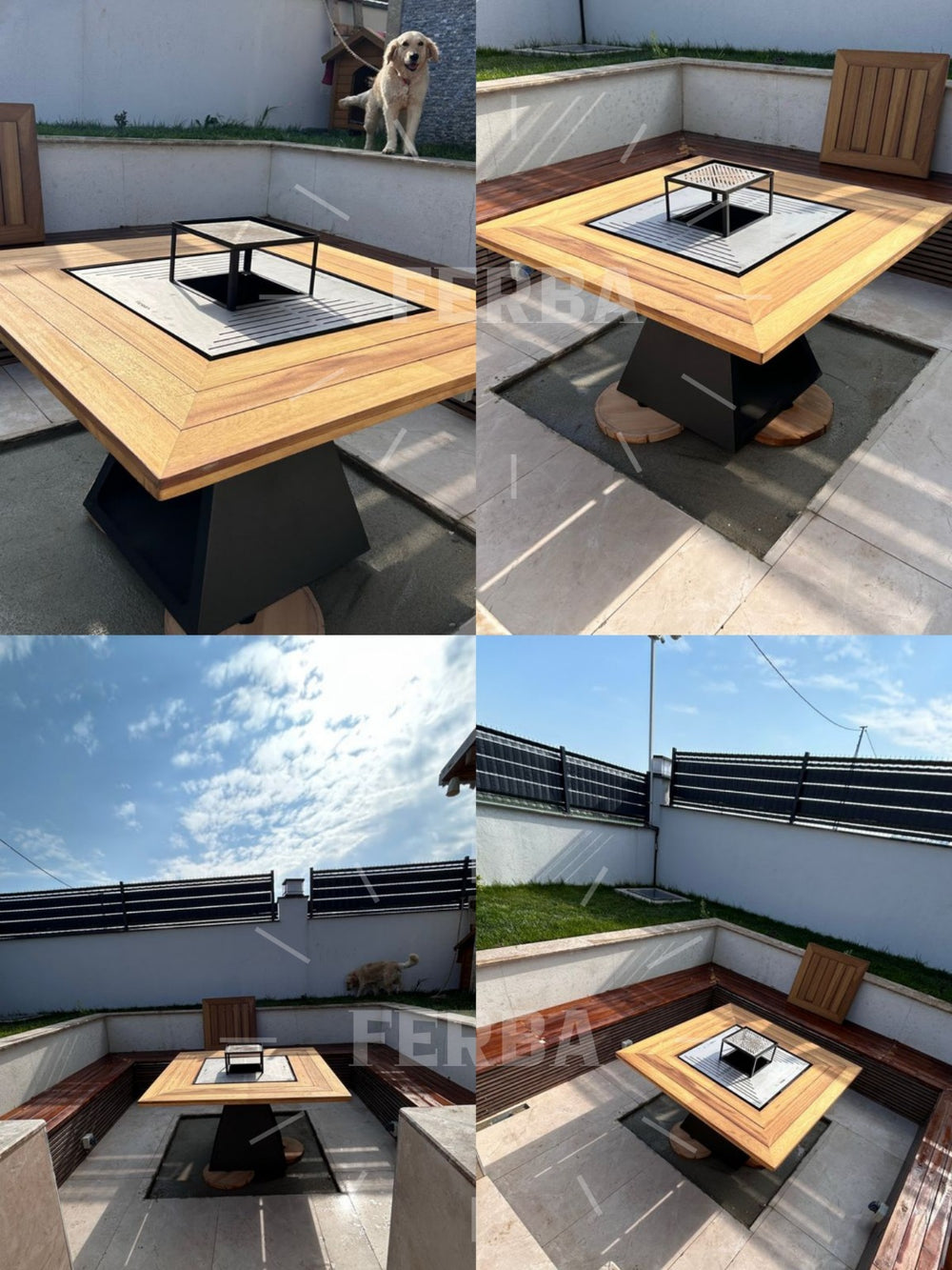 - Mangalın üstünde bulunan ahşap kısım dış ortam koşullarına dayanıklı iroko cinsi ahşaptır.