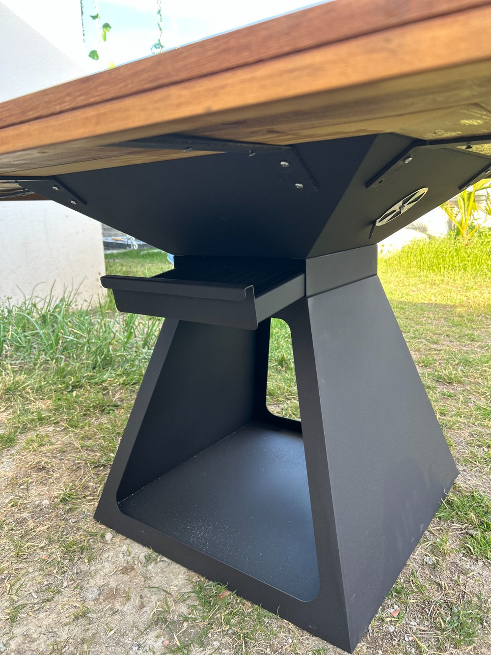 - Mangalın alt kısmı ile odunluğun birleştiği yerde küllük çekmecesi bulunmaktadır. Bu küllük çekmecesi ile küllerinizi rahatlıkla boşaltıp mangal masanızı temizleyebilirsiniz.