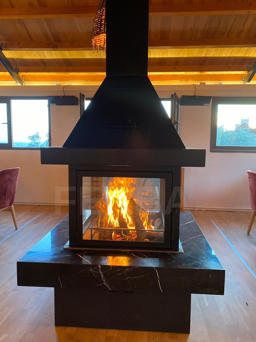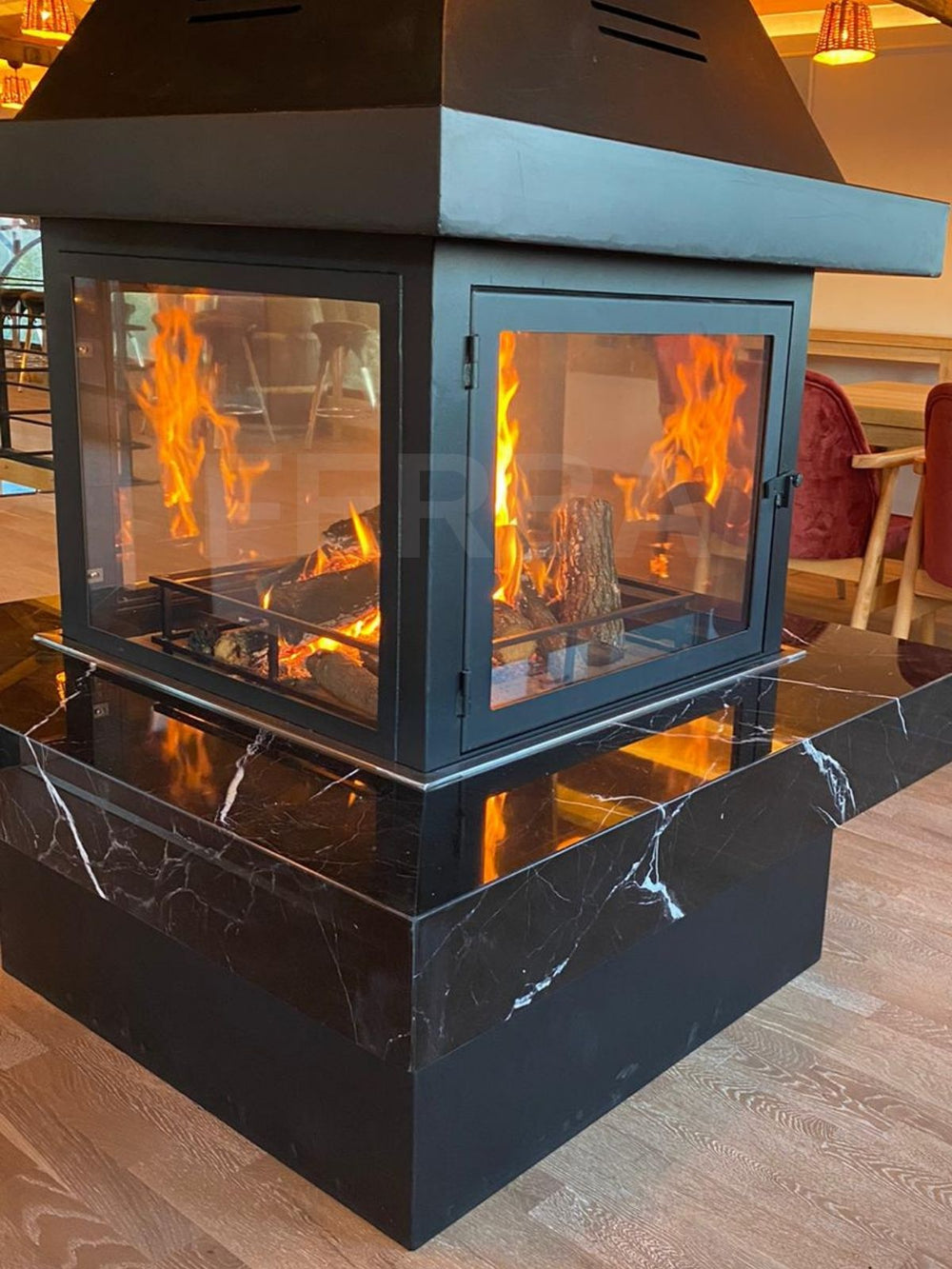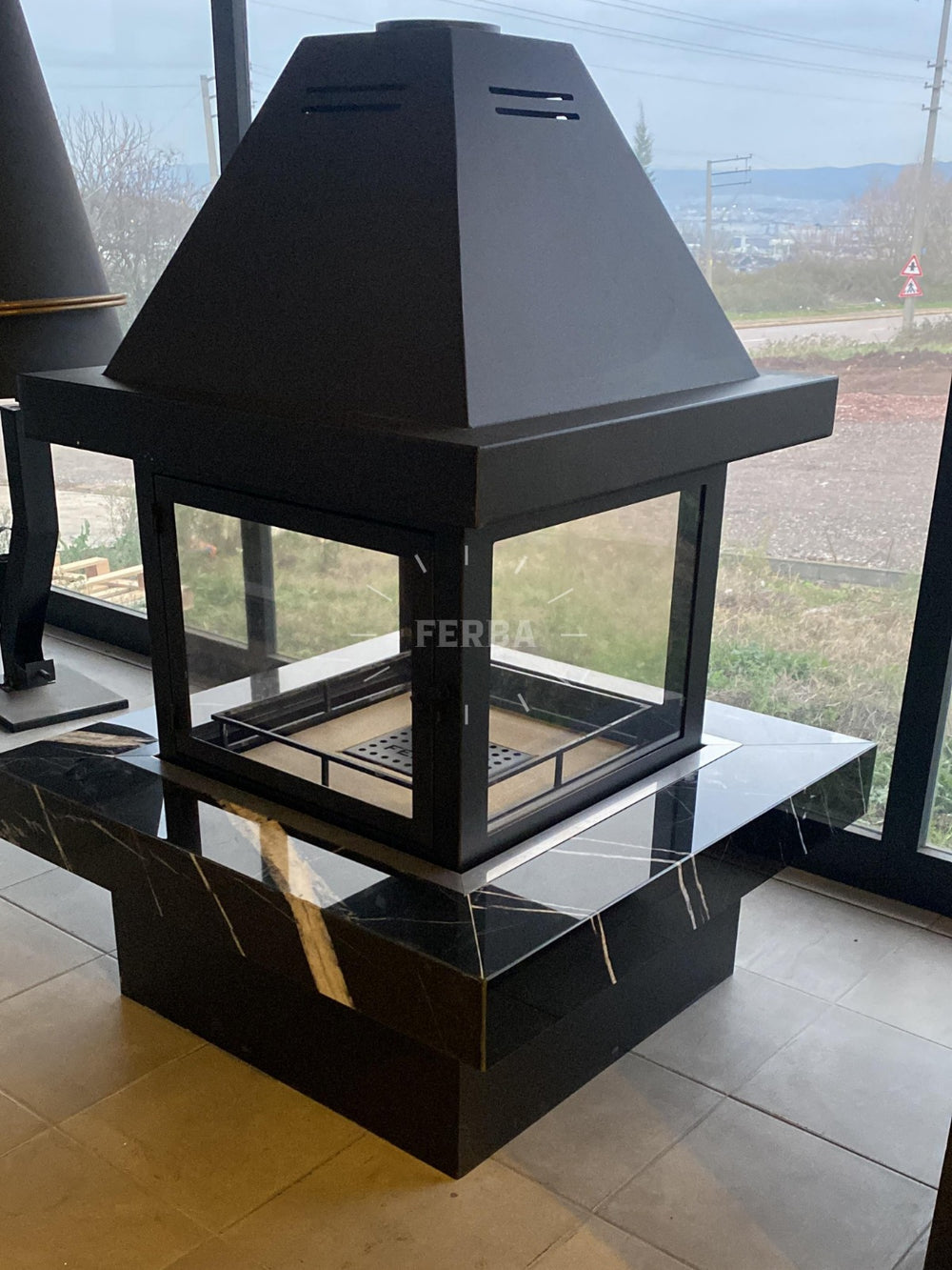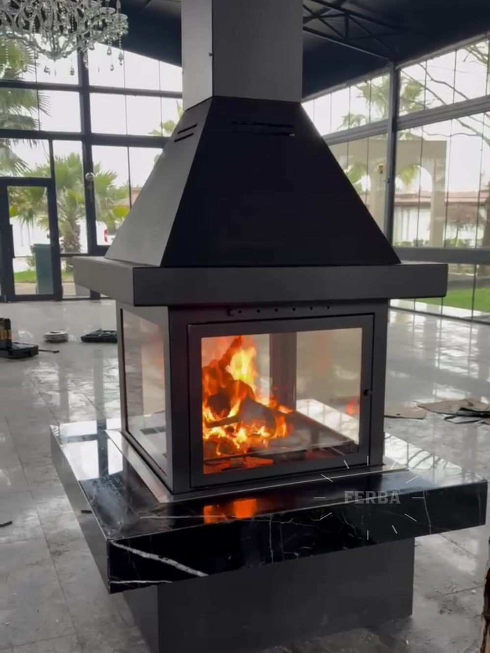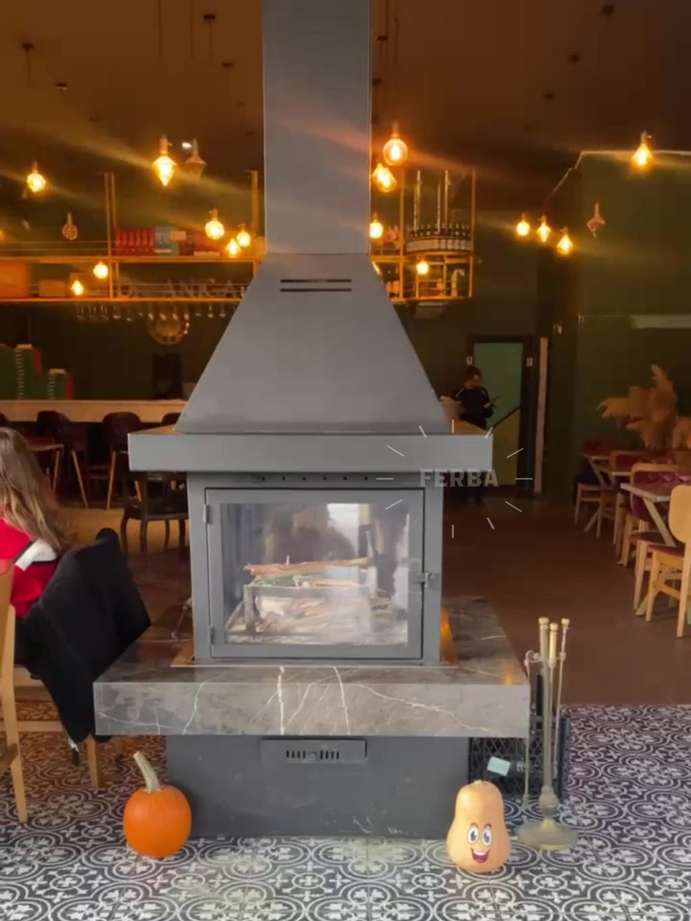 FERBA kalitesiyle üretilen bu orta şömine, hem restoran, kafe gibi ticari alanlarda hem de ev içi geniş yaşam alanlarında prestijli bir atmosfer yaratır.