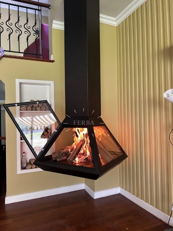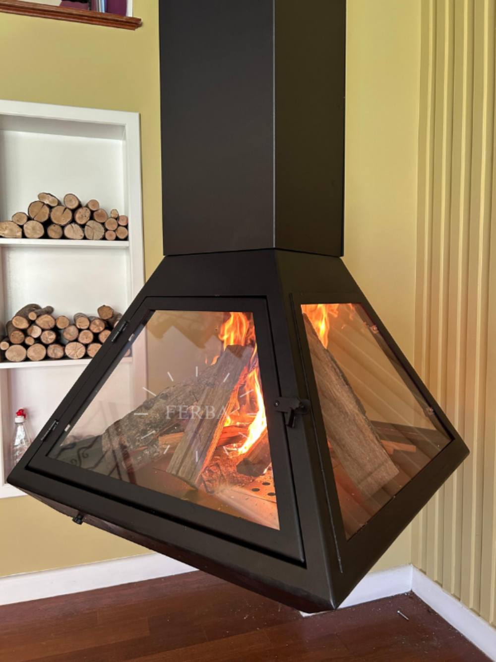 Asma yapısı sayesinde mekânınızda yer tasarrufu sağlar, aynı zamanda ferah bir atmosfer oluşturur. Hem ısı verimliliği yüksek hem de dekoratif olan bu şömine, modern yaşam alanlarına sıcak bir dokunuş yapmak isteyenler için ideal bir seçimdir.