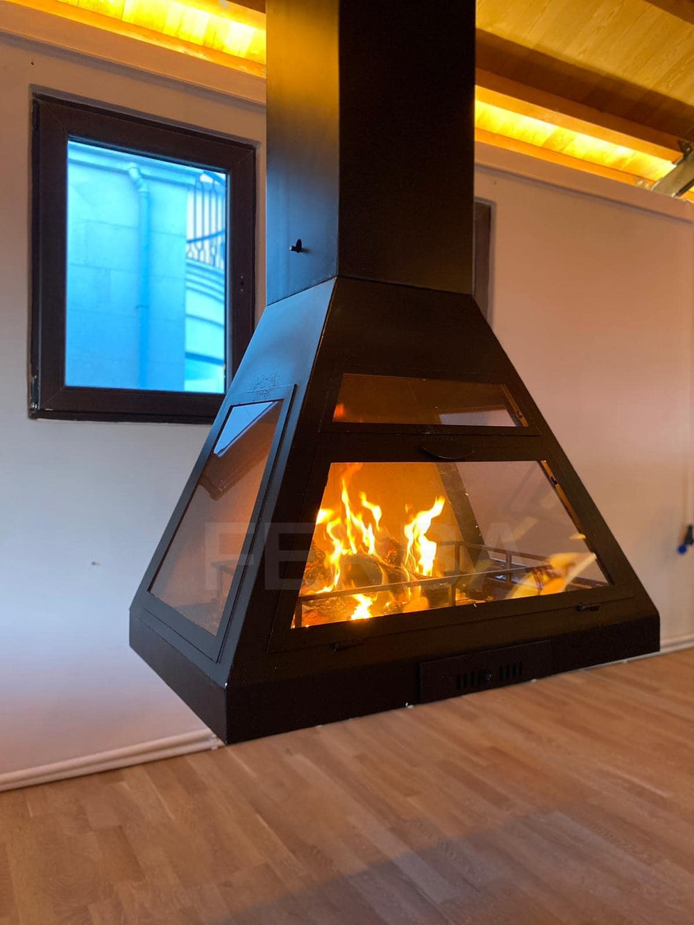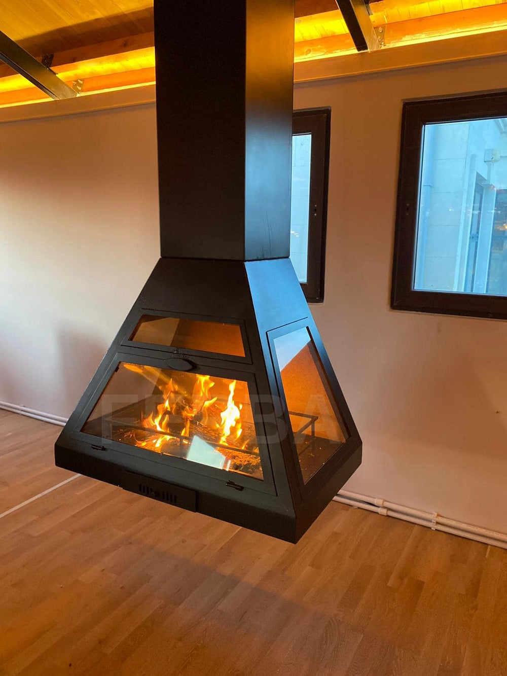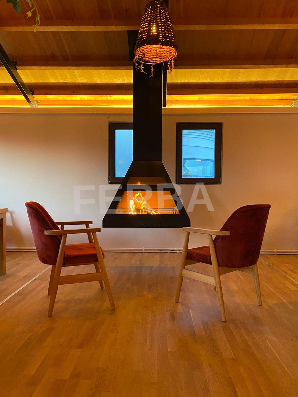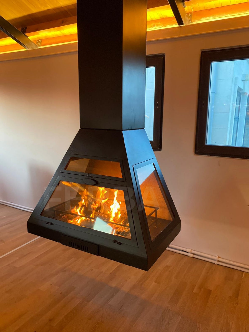 Kapalı mekanlarda estetik ve fonksiyonelliği bir arada sunan asma şömine modelimiz, özellikle ev, otel ve restoran gibi alanlar için mükemmel bir tercih sunar. Tavana monte edilen bu model, modern iç mekan dekorasyonuna zarif bir dokunuş katar.