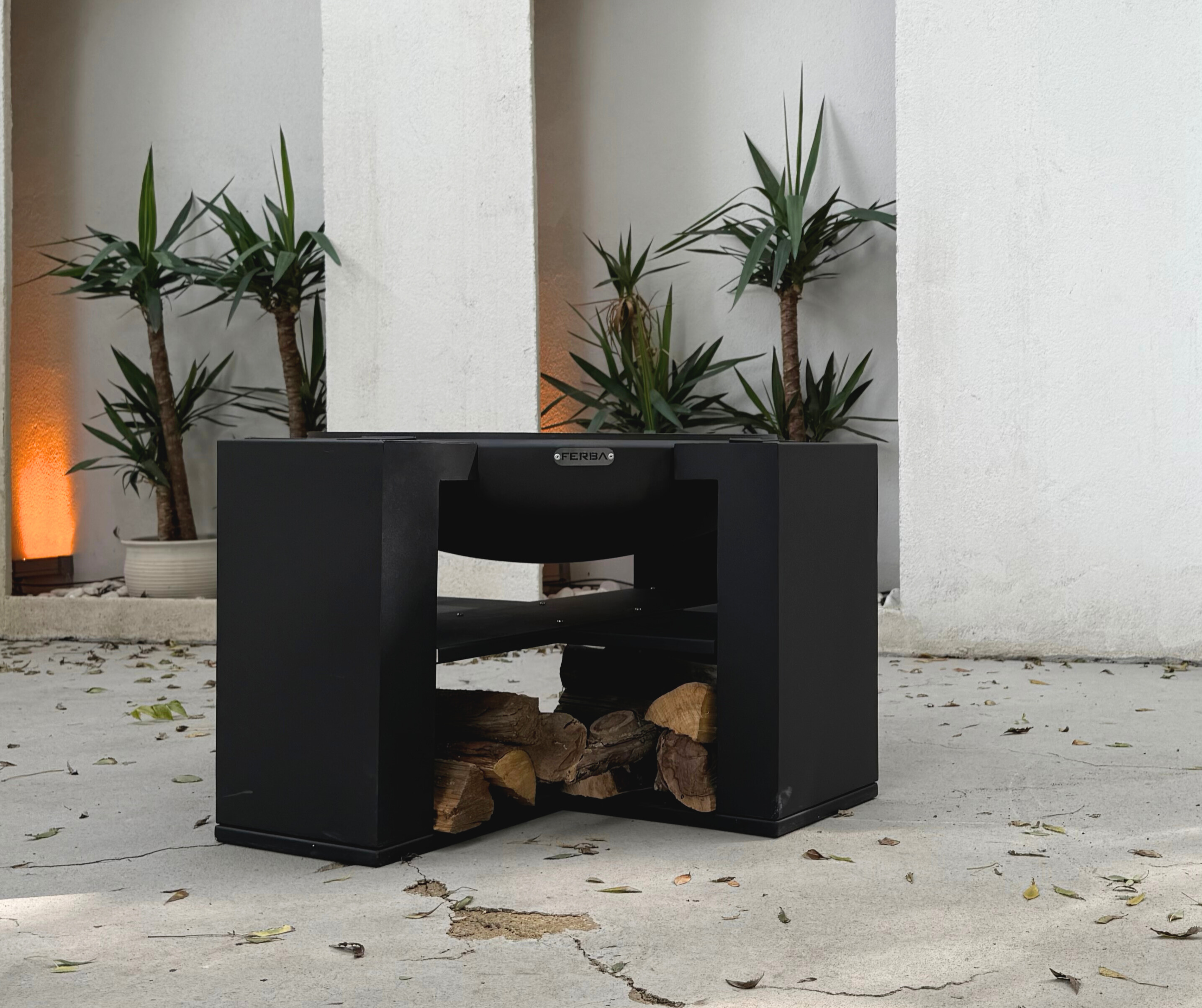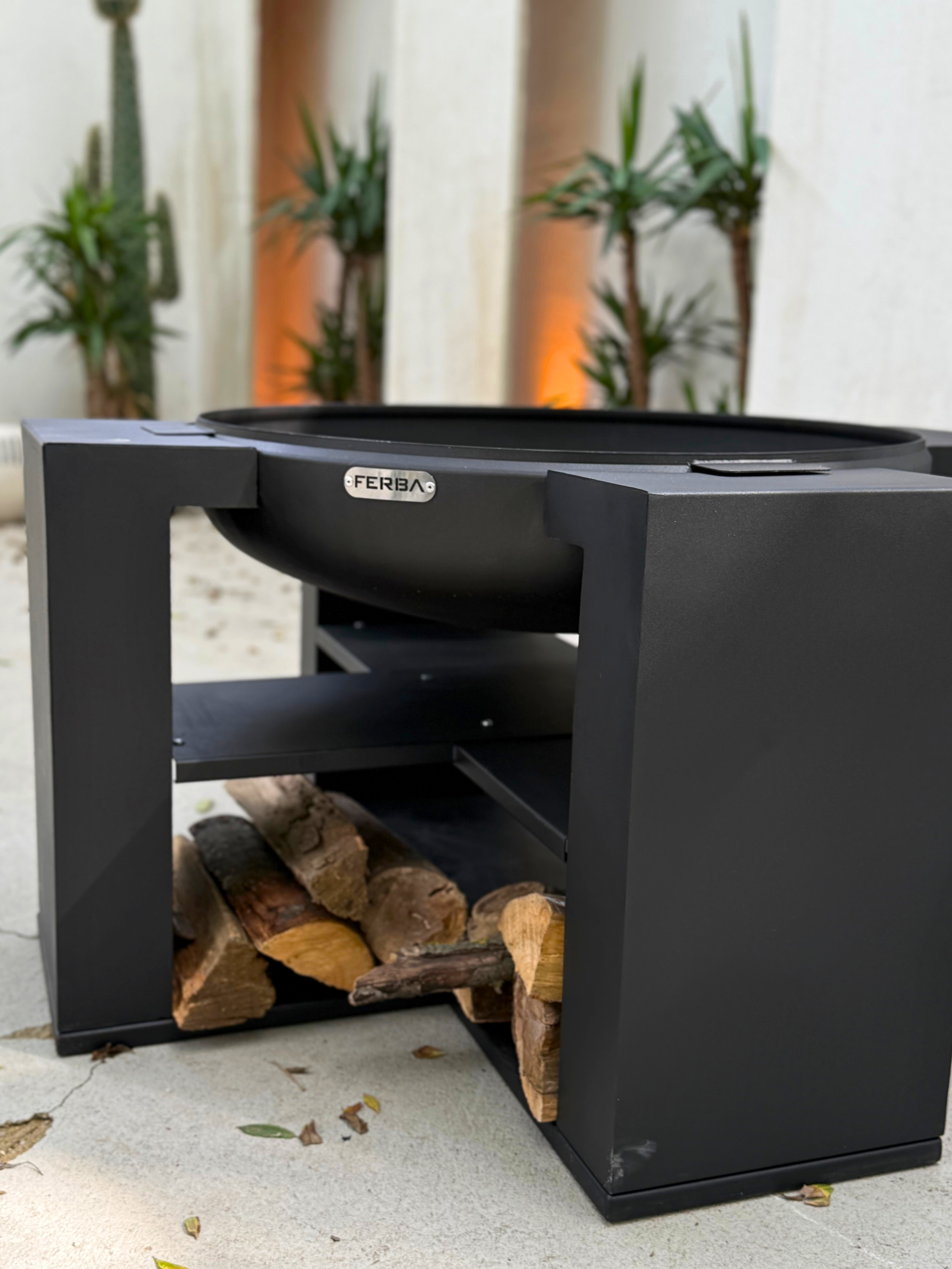 Alt kısımda yer alan raflı yapı, odunlarınızı düzenli şekilde saklamanızı sağlar. Bu alan aynı zamanda minimal şıklığıyla ürüne estetik katkı sunar.