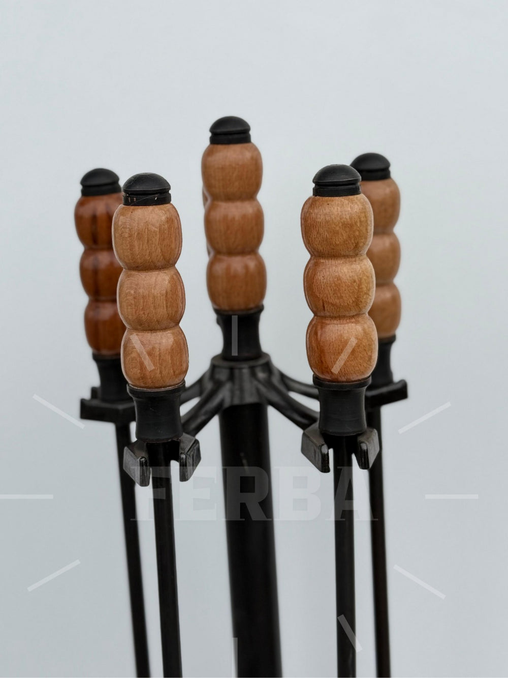 AHŞAP BAŞLI BODUR ŞÖMİNE MAŞA TAKIMI