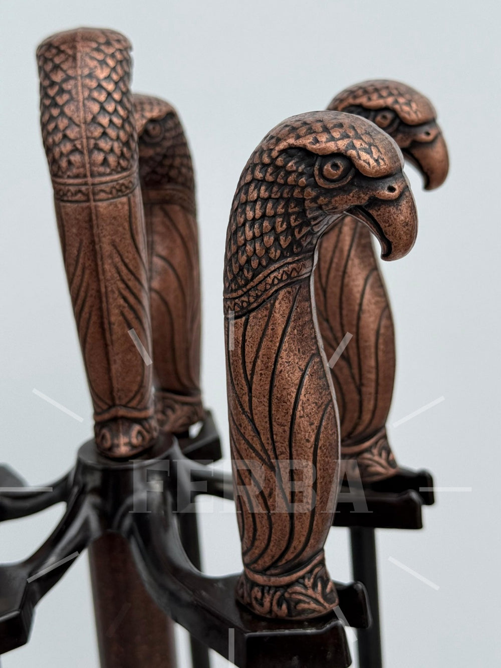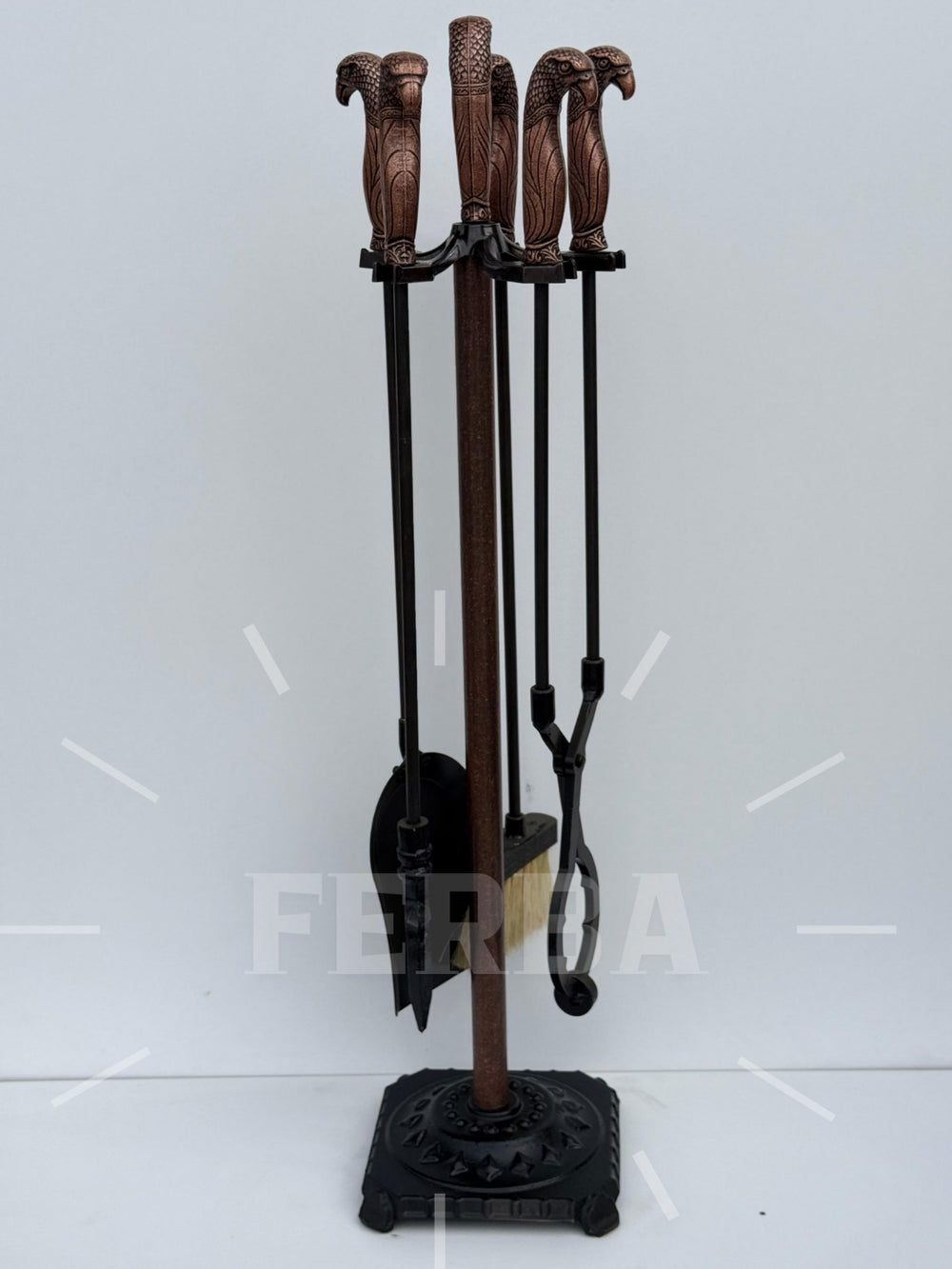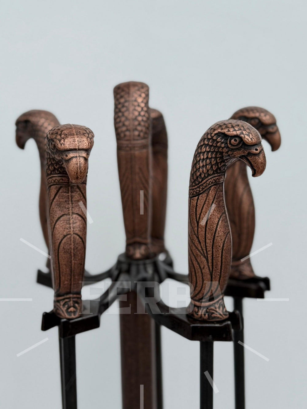 Antik Bakır Şahin Başlı Şömine Maşa Takımı