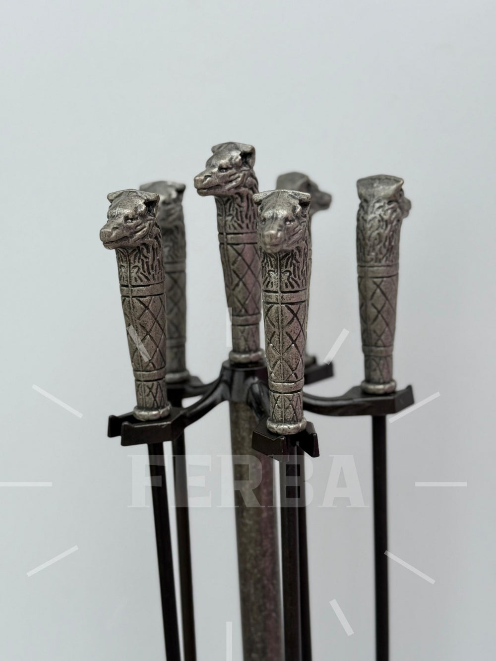Antik Gümüş At Başlıklı Şömine Maşa Takımı
