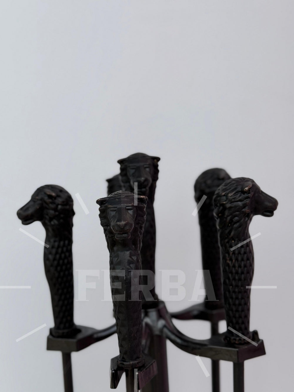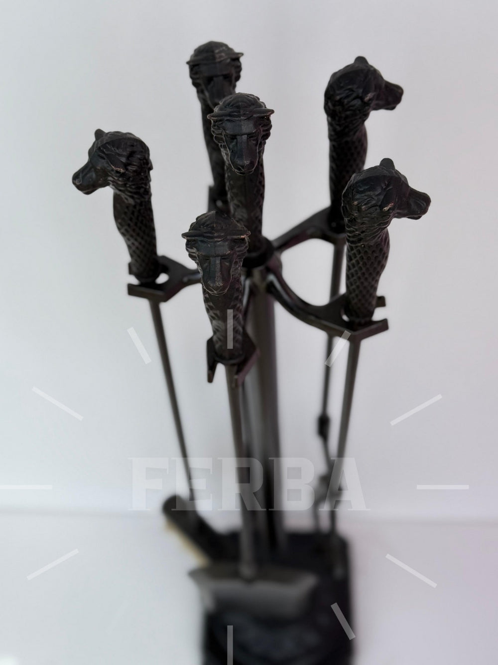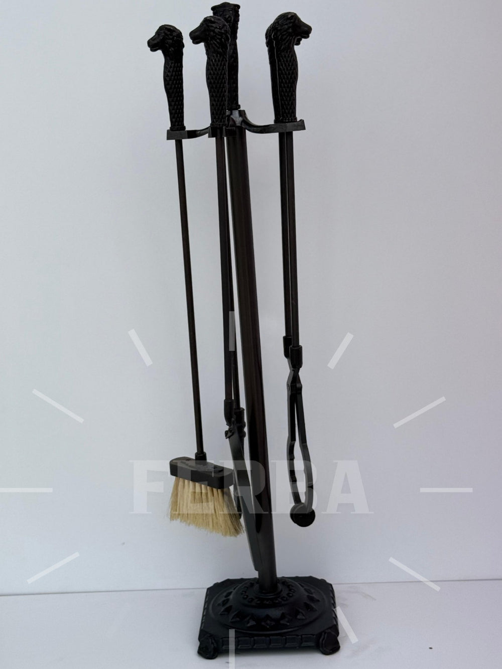 Aslan Figürlü Siyah Şömine Maşa Takımı