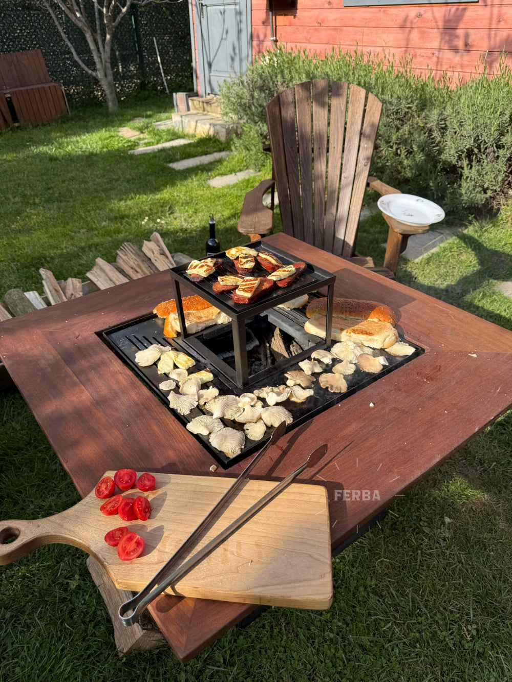 Entegre ızgara sistemi: Ateş bölmesinin üzerinde konumlandırılan ızgara sayesinde sebze ve ekmek gibi yiyecekleri kolayca pişirme olanağı sağlar.