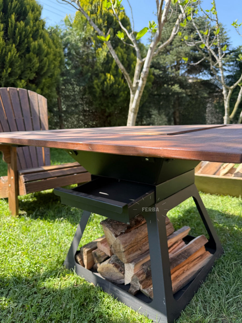 Çift amaçlı kullanım: Bahçe, balkon, teras gibi açık alanlarda hem şömine hem de masa olarak kullanılabilir.