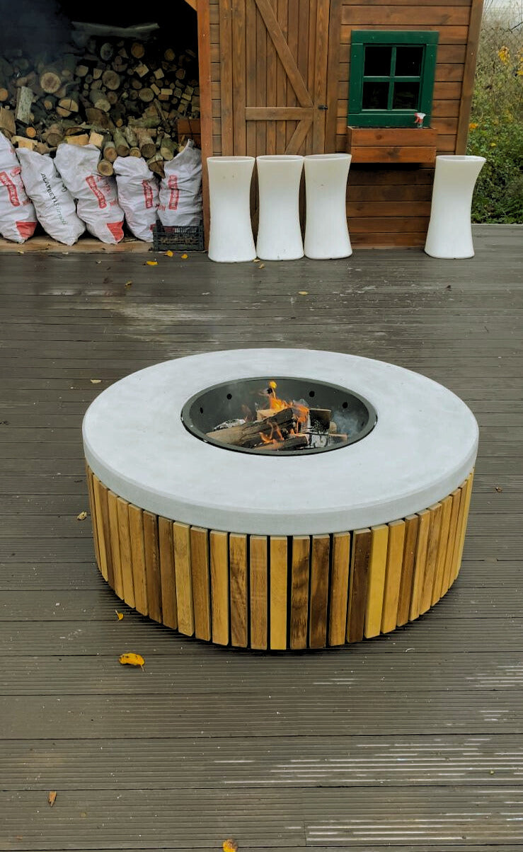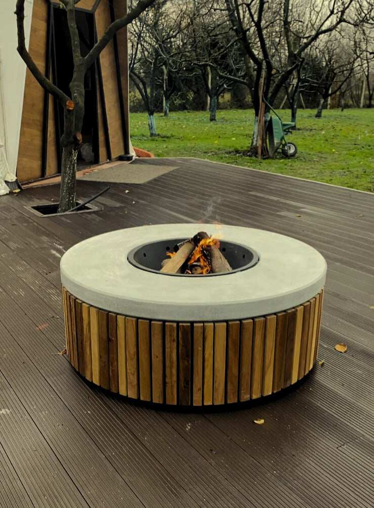 Malzeme Kalitesi : Üst tabla ısıya dayanıklı hafif beton, gövde kaplaması ise dış hava şartlarına dayanıklı iroko ağacından üretilmiştir.