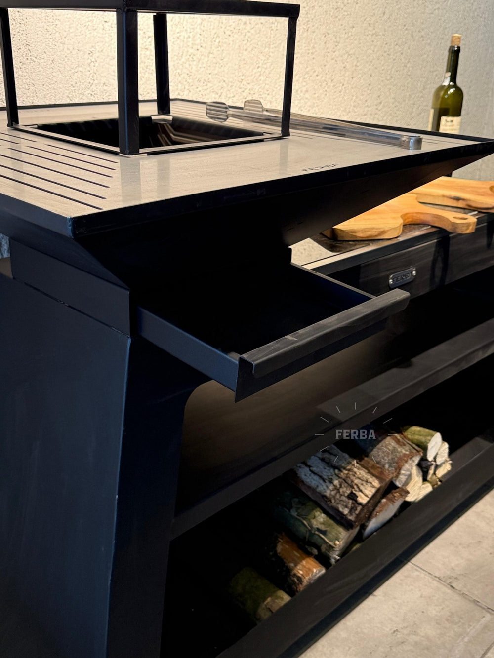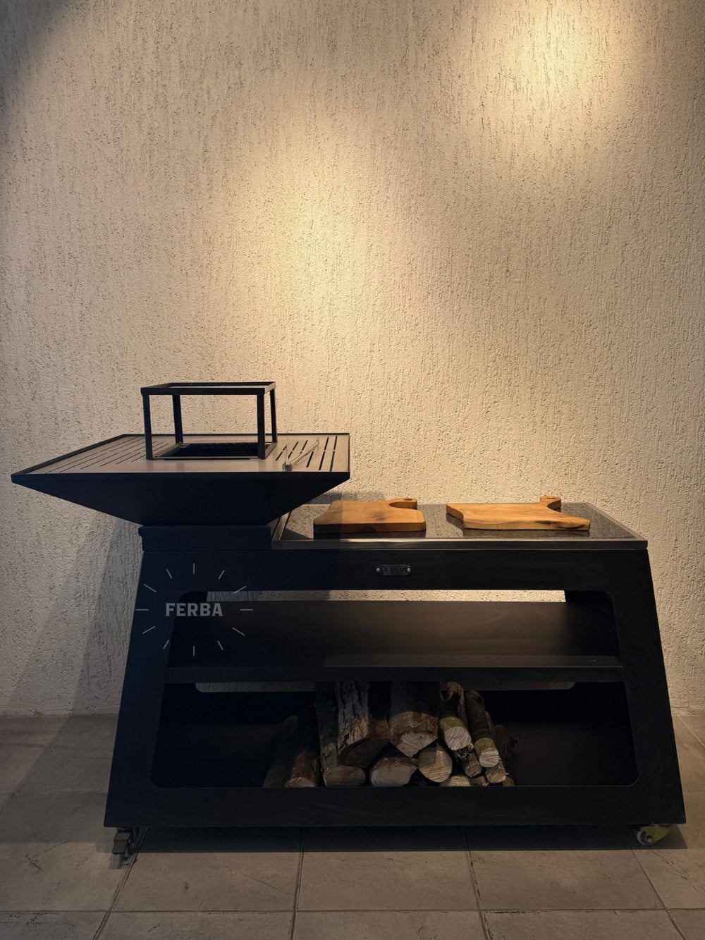 FERBA, hem fonksiyonel hem de estetik tasarımıyla bahçe ve teraslara şıklık katıyor. 70x70 cm boyutlarındaki geniş mangal alanı, kalabalık sofralar için ideal pişirme imkanı sunarken; 160 cm'lik granit tezgahı ile hazırlık ve sunum süreçlerini keyfe dönüştürüyor.