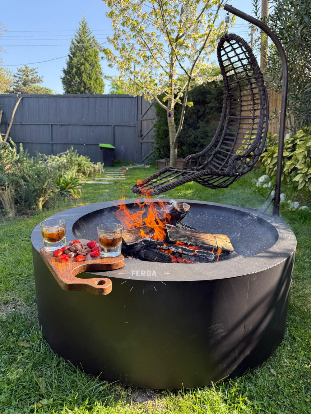 -Ateş çukuru modelimizin yan kısımlarındaki bardak ve tabaklarınızı yerleştirerek samara bahçe şöminemizin çevresinde konforun tadını çıkarın.