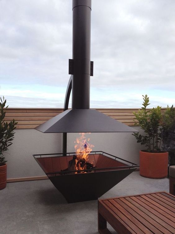 SMART Orta Bahçe Şöminesi – Askılı Davlumbaz Sistemli Özel Tasarım