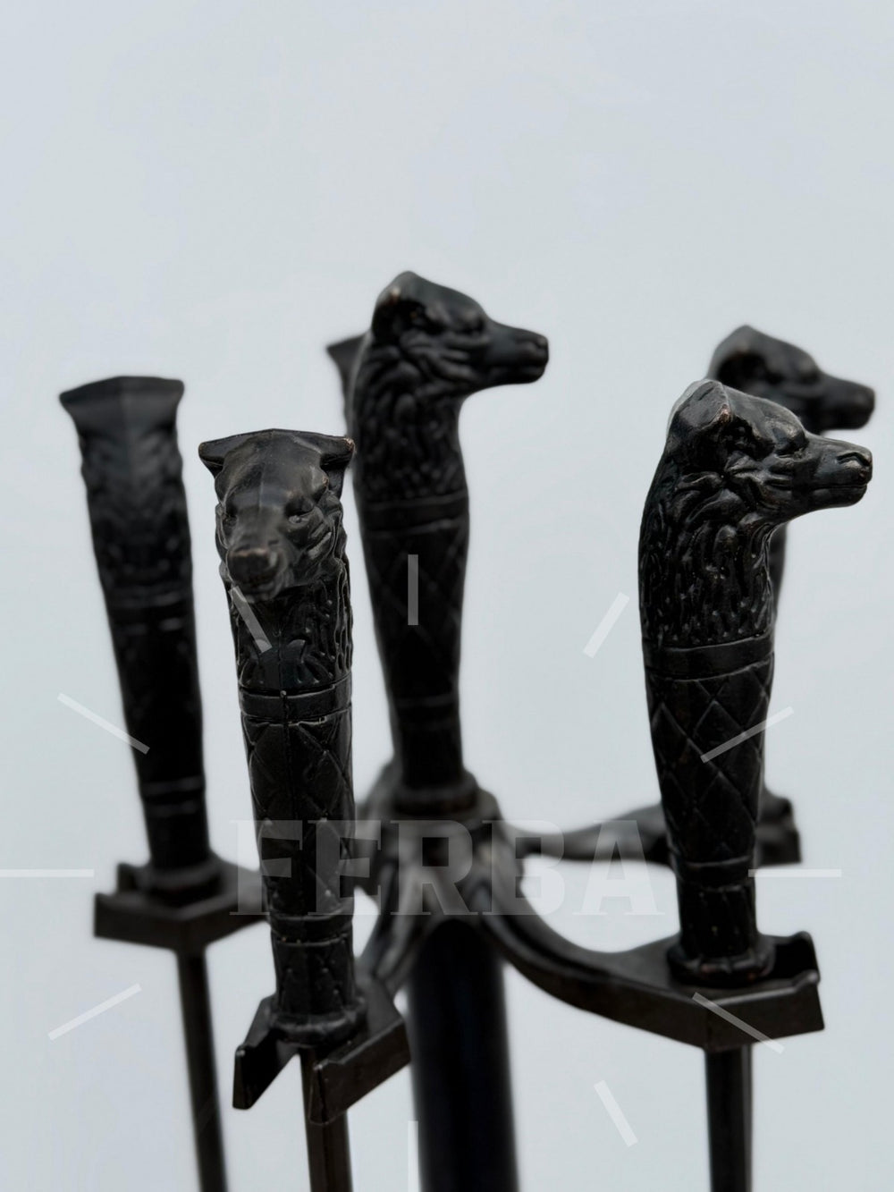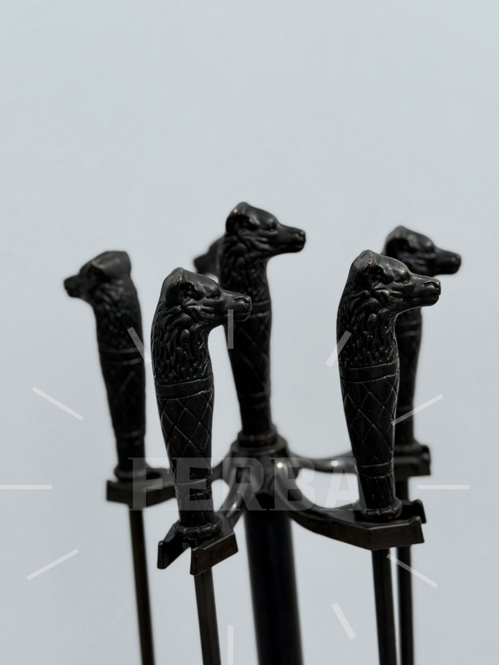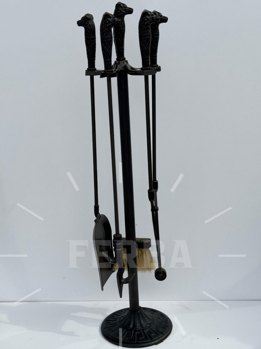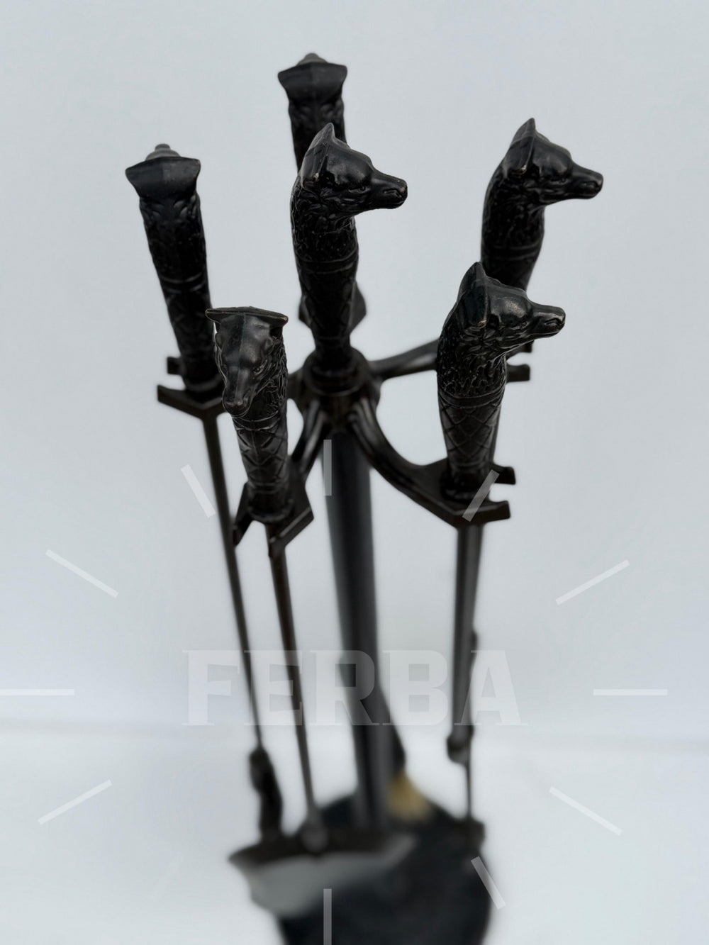 Siyah Kurt Başlı Modern Şömine Maşa Takımı
